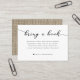 Bring a Book Baby Shower Enclosure Burlap Sacking Business Card