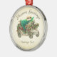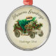 This adorable design features a vintage car decorated with holly and berries. In the car there is a fresh Christmas tree with a SOLD tag. The background also as a vintage parchment look. On the bottom there is a text box that allows you to customize your ornament.