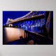 A vivid colour image of one of Australia's state capital's, Brisbane in Queensland. This iconic bridge, the Story Bridge lies adjacent to the central business district (CBD). The lighting through the architecture of this bridge casts a orange reflection in the Brisbane River below and the lights of the city's skyscrapers can be captured in the background. The foreground hints of the industrial function of the lower lying areas on the river
