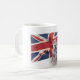 Shown is a photographic image of a white English bulldog wearing a deerstalker cap and with a calabash pipe (inspired by Shirlock Holmes) in front of a British flag.