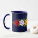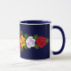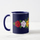 A coffee or tea mug for your narrowboat or your home as a reminder of your last canal trip, with the red, yellow and white roses that are traditionally painted on narrowboats in the UK. The dark blue background colour can be changed to match your boat.