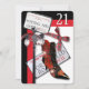 A fun, unique and patriotic British lass "shop till you drop" theme featuring lamp posts, famous high street road names, a stylish lace up high heeled boot, with a red, black and yellow gingham pattern plus a bow.