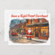 This funny watercolor Christmas card captures the jolly spirit of the holidays with Santa Claus enjoying a pint under twinkling lights.