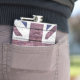 The flask itself is fine. It’s a cheap flask, obviously bought in bulk, however am prepared to overlook that. Given that it is a personalized item, I would have liked to have seen gift boxing instead of the generic packaging. Terrible printing, and/or quality. It’s a cheap, tacky vinyl. It is not cut straight and is also applied in a way that it is overhanging the bottom, causing the glue to catch on items and it will eventually roll and tear, damaging the wrap.