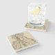 The coasters are gorgeous, a quality feel and heavy weight. They look like a precious archeological find. A rustic stone juxtaposed with a modern floral black and white print. I like the way the print goes slightly imperfect on the cut stone edges giving them a kind-of natural beauty.