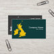 A business card with a map of the British Isles. Company details on the front with name and contact details on the back in a tonal style contrasting the front.