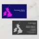 A business card with a map of the British Isles. Company details on the front with name and contact details on the back in a tonal style contrasting the front.