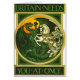 Vintage British recruiting poster for World War I. The roundel image is of St. George slaying the dragon. From an original 20th century (1915) lithograph by Parliamentary Recruiting Committee. All Rights Reserved © 2013 padre art