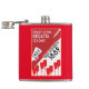 The flask itself is fine. It’s a cheap flask, obviously bought in bulk, however am prepared to overlook that. Given that it is a personalized item, I would have liked to have seen gift boxing instead of the generic packaging. Terrible printing, and/or quality. It’s a cheap, tacky vinyl. It is not cut straight and is also applied in a way that it is overhanging the bottom, causing the glue to catch on items and it will eventually roll and tear, damaging the wrap.