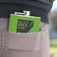The flask itself is fine. It’s a cheap flask, obviously bought in bulk, however am prepared to overlook that. Given that it is a personalized item, I would have liked to have seen gift boxing instead of the generic packaging. Terrible printing, and/or quality. It’s a cheap, tacky vinyl. It is not cut straight and is also applied in a way that it is overhanging the bottom, causing the glue to catch on items and it will eventually roll and tear, damaging the wrap.
