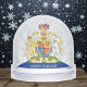 Patriotic United Kingdom Snow Globe featuring frosty snowflakes background falling behind the British emblem (blue sky glimmer on the back) & British Flag / UK, winter Christmas decoration, holiday gifts for patriots / sports fans.
