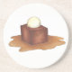 Sandstone coaster features an original marker illustration of a classic British sticky toffee pudding dessert.