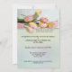 British style birthday party or Easter brunch or High Tea invitation featuring a colourful tea on the front side and elegant spring tulip flowers on the back