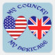 Image features heart-shaped flags of the UK and US. Reads, "my country my heritage", Fun way to show your love of both your American and British ancestries, heritages and cultures. Wonderful for holidays and family reunions, too. Terrific gift.