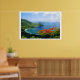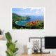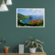 British Virgin Isles poster shows the beautiful Cane Garden Bay, Tortola. In fantastic, almost technicolor this poster shows the art of mother nature in all her lush glory green grass, colorful trees and bright blue sea and will make a perfect gift of a poster for your home or office.