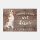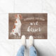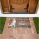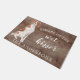Funny beware of the wet kisser" Brittany Dog door mat set on a rustic faux background. Visit our shop to view a large assortment of dog breads