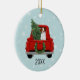 Brittany Spaniel Christmas Red Truck Ceramic Ornament
