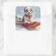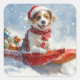 Brittany Spaniel Dog in Sledge Christmas Square Sticker