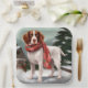 Brittany Spaniel Dog in Snow Christmas Paper Plate
