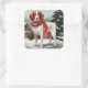 Brittany Spaniel Dog in Snow Christmas Square Sticker