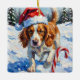 Celebrate the keen focus and energy of the Brittany Spaniel this Christmas! This lively watercolor features a handsome Brittany, wearing a Santa hat, intensely 'pointing' at a lost candy cane in a bright, snowy field. Perfect for Brittany owners, hunting dog enthusiasts, and anyone who appreciates a vibrant, active pet design for the holidays. Ideal for unique Christmas cards, seasonal apparel, and gifts that capture the breed's intelligence and festive spirit.