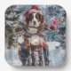 Brittany Spaniel Dog Riding Motorcycle Christmas Paper Plate
