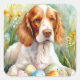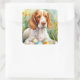 Brittany Spaniel Dog with Easter Eggs Holiday Square Sticker