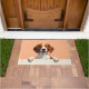 The soft apricot peach background adds warmth and a welcoming feel, perfect for brightening any entryway. Designed with extra space at the top and bottom, it allows easy personalization with names, welcome messages, or custom text—making it ideal for unique dog-themed doormats and thoughtful gifts.