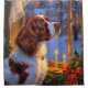 A heartwarming holiday scene featuring a dog sitting peacefully beside a window, surrounded by glowing Christmas lights. This cosy and festive design captures the spirit of the season, perfect for adding warmth and charm to any space. Ideal for dog lovers and holiday decor enthusiasts.