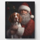 Brittany Spaniel With Santa Claus Christmas Plaque