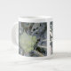 This awesome mug features a detailed photograph of a head of broccoli growing in a garden. The tightly bunched green florets are surrounded by the large outer leaves of the vegetable.