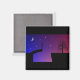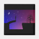 A drawing of a man standing silhouetted on a broken bridge, looking across the gulf where a lone willow tree stands. In the sky behind him are the moon and stars in a dark blue sky, fading to red on the far side for the beginning of the sunrise. An illustration of the emotions of hope, despair, and loneliness as he reaches the end of the road and finds the way impassable.