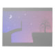 A drawing of a man standing silhouetted on a broken bridge, looking across the gulf where a lone willow tree stands. In the sky behind him are the moon and stars in a dark blue sky, fading to red on the far side for the beginning of the sunrise. An illustration of the emotions of hope, despair, and loneliness as he reaches the end of the road and finds the way impassable.