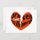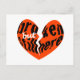 Postcard with red heart saying "Broken but still here." Bring out your emotions with this postcard and show people that a broken heart cannot stop you from anything.