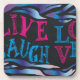 Zebra stripes in hues of blues and purple with colourful chalkboard Live, Laugh, Love