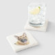 The coasters are gorgeous, a quality feel and heavy weight. They look like a precious archeological find. A rustic stone juxtaposed with a modern floral black and white print. I like the way the print goes slightly imperfect on the cut stone edges giving them a kind-of natural beauty.