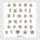 Gorgeous two tone bronze and sage colour outline lower letter font initial typography monogram alphabet sticker pack for monogramming, personalising, customising, note writing, journals, notebooks, and more. This set also includes an exclamation point, heart, star and flower.