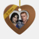 This heart-shaped ornament with a bronze look print (not actually metallic) is perfect either for an 8th wedding anniversary (which is traditionally celebrated with bronze) or any other occasion. Add your own photo to the heart frame and then on the back personalise it with a custom message. Although the text on the yellow ribbon says '8 years' for those celebrating eight years of marriage, it can be changed to any other short text of your choice (such as 'I love you'). This design has a slight 3d look -- note that the ornament itself is a flat printed design and is not raised or textured.
