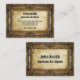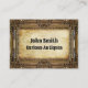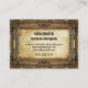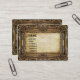 Grungy business card design, featuring a thick ornate bronze painting frame and old stained paper as a surface for the text.