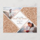 Beautiful modern geometric save the date postcard with glitter and two image slots for your photos. Edit this save the date wedding card with your information and customise it for further font and font colour options.