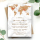 Bronze Marble World Map Travelling Hearts Wedding Invitation