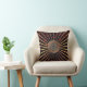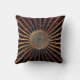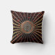 Bronze Orange Metallic Throw Pillow with Celtic Knot. Bronze, metallic like star rays on a dark orange jewelled effect background with an orange black and gold Celtic Heart Knot at the centre. Celtic knots are an ancient Celtic traditional art form usually chraacterised by having no beginning and no end. They symbolise eternal love and the never-ending cycle of life. They have been found to be a favourite symbol in many varied cultures and civilisations, and with many practitioners of magic or mysticism today. The four-sided shield knot represents protection.