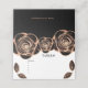 Introducing our elegant Bronze Rose with Leaves on Black customisable place card. This multifunctional card features a striking bronze rose design on a sleek black background, perfect for adding a touch of sophistication to your event. The front includes space for the table number and guest list, while the back offers a heartfelt thank you message. Inside, there's a designated area for writing down your menu, eliminating the need for multiple signs and keeping everything organised in one beautiful place.