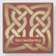 Set here over an earthy red background, the bronze toned celtic knot serves to set the stage for a box holding your text.