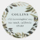 Perfect for your holiday cards and Christmas season mailings, these elegant botanical 1.5" return address stickers feature your return address on a pale sage green background surrounded by painted watercolor leaves and foliage.