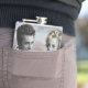 The flask itself is fine. It’s a cheap flask, obviously bought in bulk, however am prepared to overlook that. Given that it is a personalized item, I would have liked to have seen gift boxing instead of the generic packaging. Terrible printing, and/or quality. It’s a cheap, tacky vinyl. It is not cut straight and is also applied in a way that it is overhanging the bottom, causing the glue to catch on items and it will eventually roll and tear, damaging the wrap.