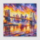 The Brooklyn Bridge, an architectural marvel completed in 1883, symbolised industrial innovation and urban elegance. Its sweeping arches and steel cables connect Brooklyn to Manhattan, embodying timeless glamour and historical significance.Using the acrylic style with golden and lavender tones on this iconic marvel.
