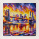 The Brooklyn Bridge, an architectural marvel completed in 1883, symbolised industrial innovation and urban elegance. Its sweeping arches and steel cables connect Brooklyn to Manhattan, embodying timeless glamour and historical significance.Using the acrylic style with golden and lavender tones on this iconic marvel.