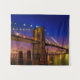 Iconic Brooklyn Bridge at night towering over East River in New York City.