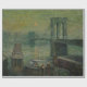 This design features a painting by the Impressionist artist Ernest Lawson (1873–1939). It shows the Brooklyn Bridge, which is a famous landmark in New York City (NYC). The bridge spans the East River between Manhattan Island and Brooklyn on Long Island. When it opened on 24 May 1883, the Brooklyn Bridge was the longest suspension bridge in the world, with a main span of almost 1,6000 feet. It provided the first fixed crossing of the East River. The bridge was originally called the New York and Brooklyn Bridge or the East River Bridge but was officially renamed the Brooklyn Bridge in 1915. In this painting, a yellow sun can be seen setting in the distance behind the Brooklyn Bridge. The sunlight is reflecting on the water. The original artwork was painted by Ernest Lawson circa 1920.